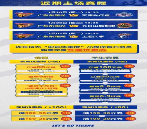 1月26日前瞻I华南虎继续主场征程,迎战天津