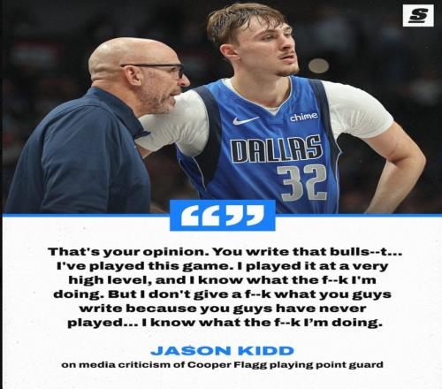 赛后记者询问基德怎么看待赛季初让弗拉格打PG被批判的话题,基德直接怒了,基德直接喷记者:我管你们XX怎么写,我打球的时候就是最顶级的球员,我干这一行这么多年我根本不在乎你们怎么说、怎么写,我TMXX清楚自己在做什么,你们爱怎么写就怎么写,我无所谓。